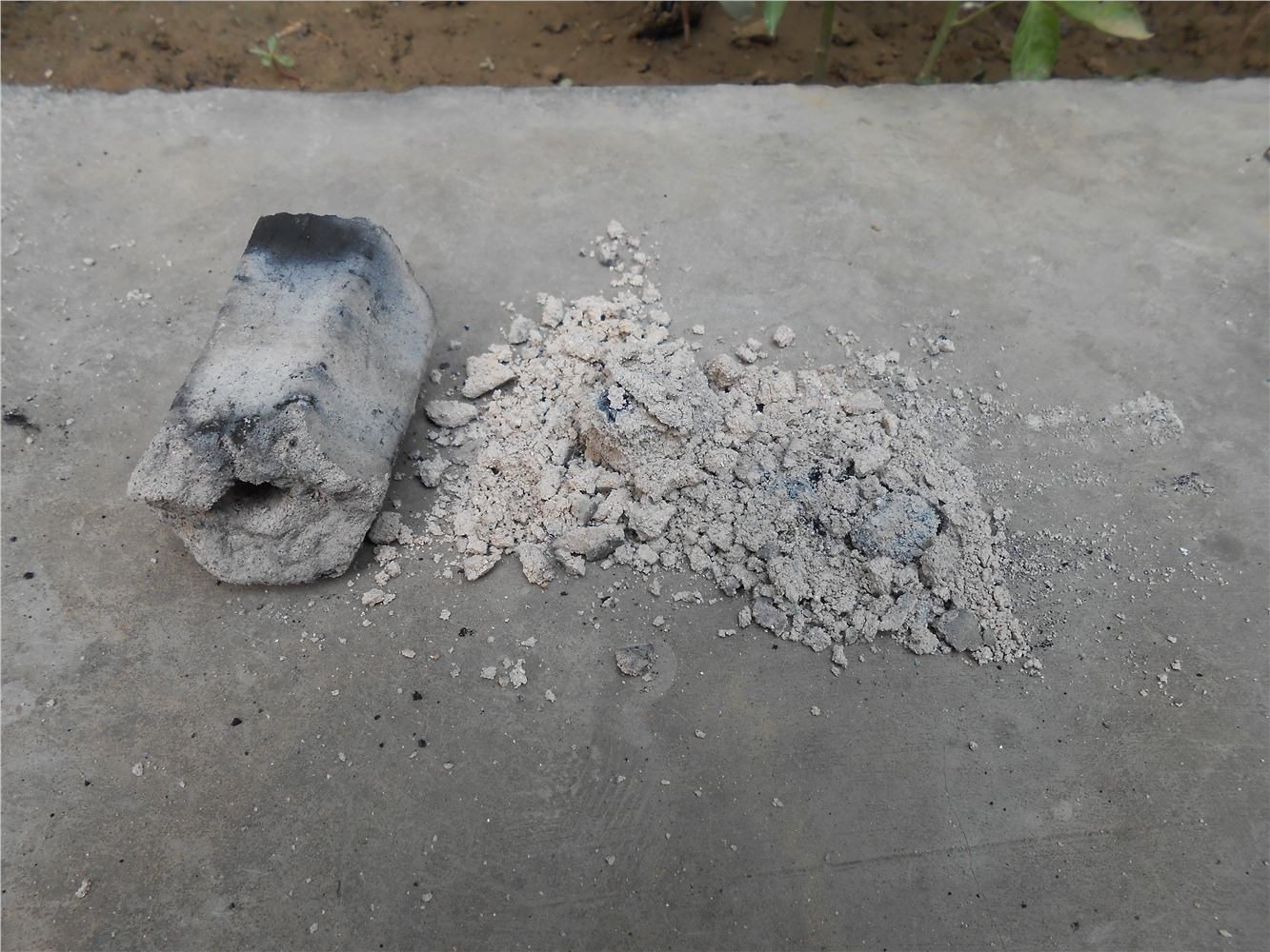 140型煤粉制棒机成品棒图、图2为:燃烧时的效果图