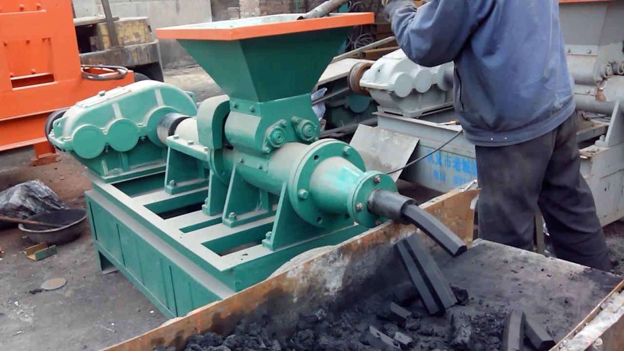煤棒机是粉末状原煤制成部同形状条形块的机具。其工作原理是:电动机经三角皮带把动力传给变速器,变速器输出轴通过浮动联轴器把动力传给推进轴,推进轴上的推进器推动煤料经成型模头推出,便*出理想的高压煤棒。