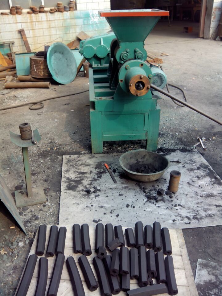 煤棒机是粉末状原煤制成部同形状条形块的机具。其工作原理是:电动机经三角皮带把动力传给变速器,变速器输出轴通过浮动联轴器把动力传给推进轴,推进轴上的推进器推动煤料经成型模头推出,便*出理想的高压煤棒。